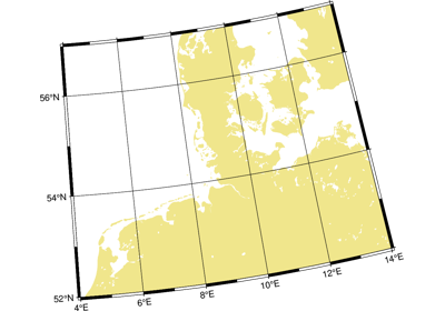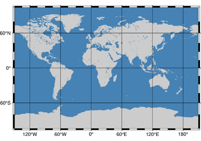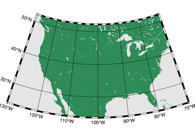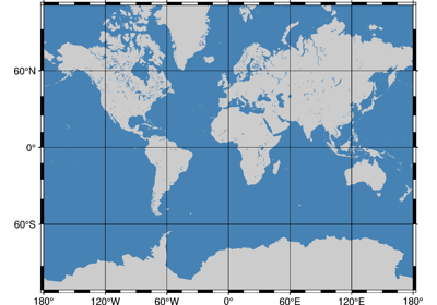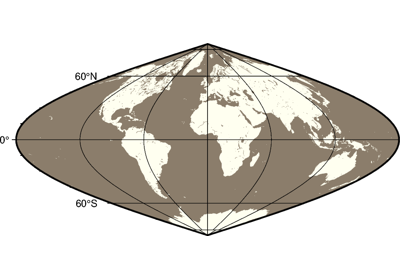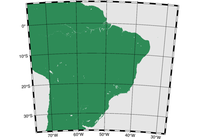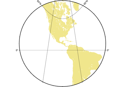 PyGMT supports many map projections; see GMT Map Projections for an overview. Use the projection parameter to specify which one you want to use in all plotting methods. The projection is specified by a one-letter code along with (sometimes optional) reference longitude and latitude and the width of the map (for example, Alon0/lat0[/horizon]/width). The map height is determined based on the region and projection.